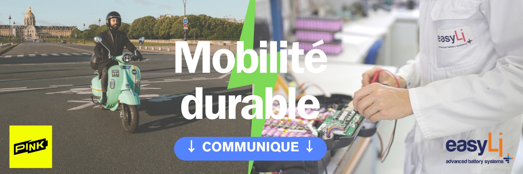 A l’heure de la COP 28 où les Etats du monde entier réunis à Dubaï cherchent à accélérer la décarbonation de nos modèles économiques, Pink Mobility et easyLi annoncent un partenariat pour équiper les scooters électriques assemblés dans les Yvelines avec des batteries conçues et fabriquées à Chasseneuil-du-Poitou. 1000 nouveaux scooters électriques à forte coloration tricolore seront accessibles en location à la minute dans Paris dès le printemps 2024.